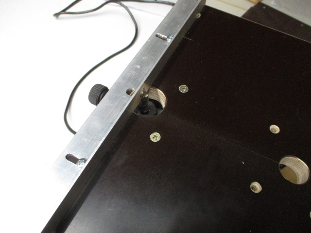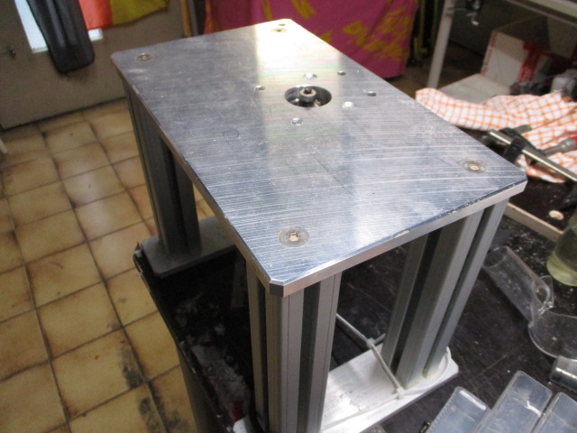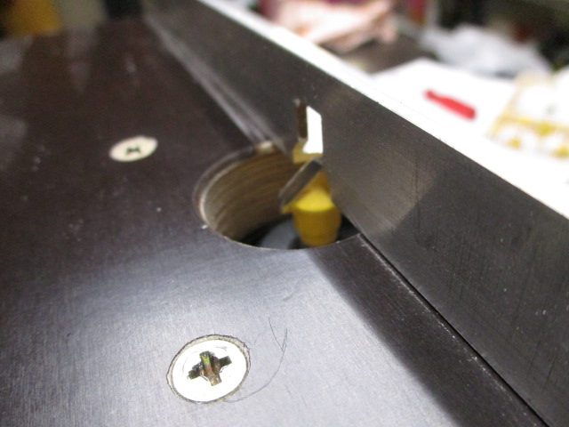 ... von oben mit montiertem Maschinchen ... ... links ein simples Aluprofil als einstellbarer Anschlag für nicht 'gelagerte Fräser ...