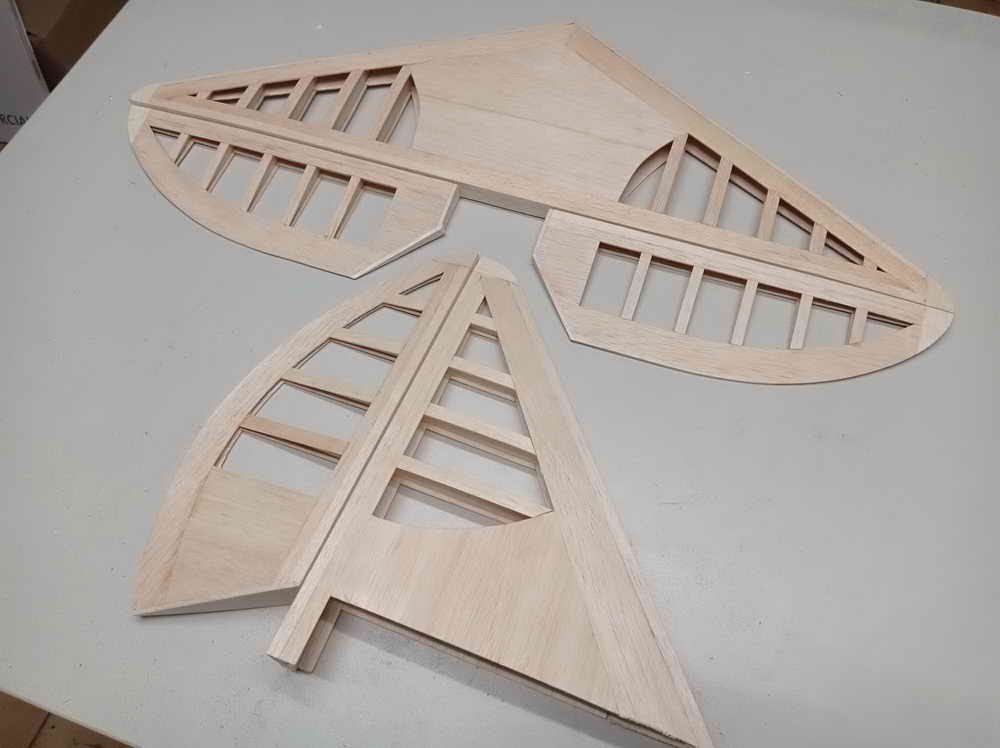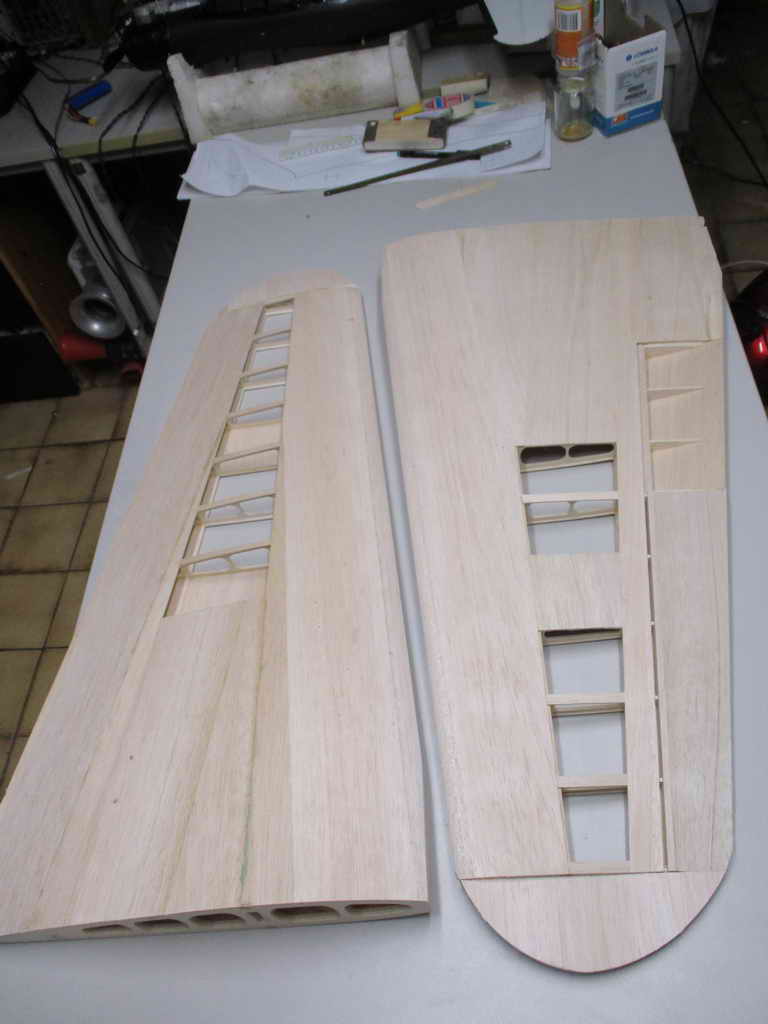 ... und hier auf 100mm breite 'Brettchen' zum verteilt - somit fertig zum Fräsen ! ... und so sehen die Leitwerke dann fertig gebaut aus ...
