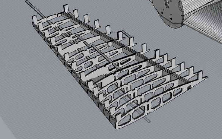 ... die Nasen- & Endleisten dienen beim Bau gleichzeitig als 'Abstandsstützen' ... der Rippensatz komplett gezeichnet ...