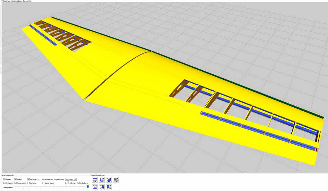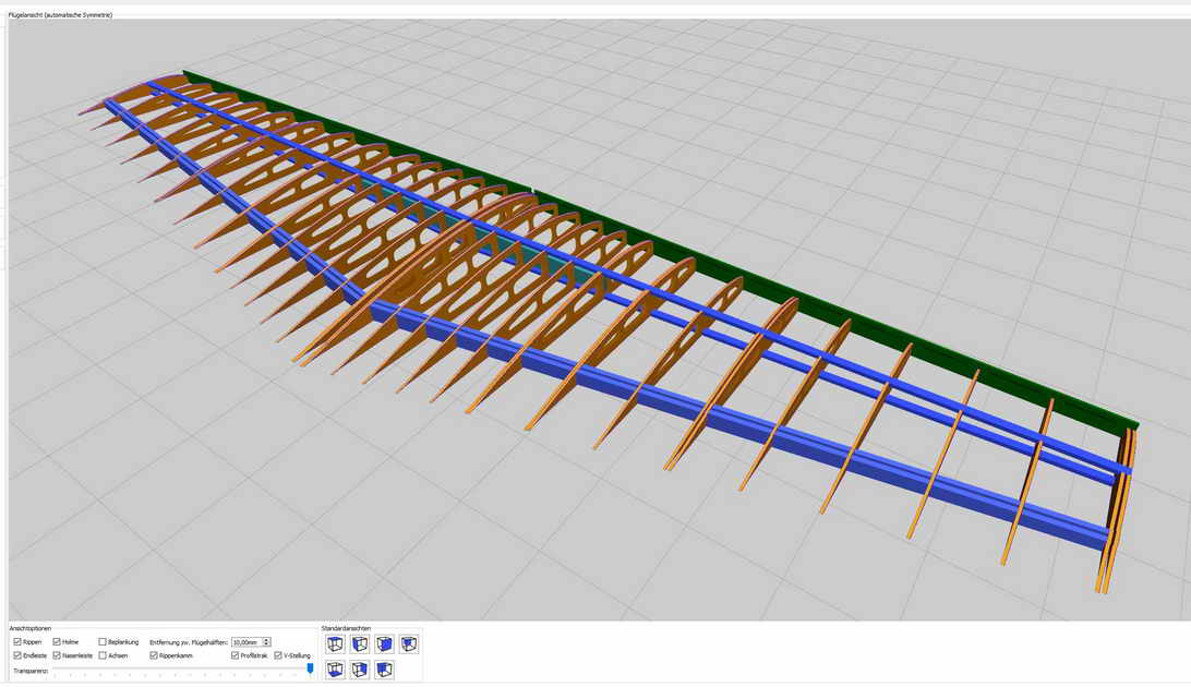 Fläche Die Fläche entsteht kontruktiv im Wing-Designer ... mit diesemTool sind dann die CNC-Daten der Rippen recht einfach zu generieren.