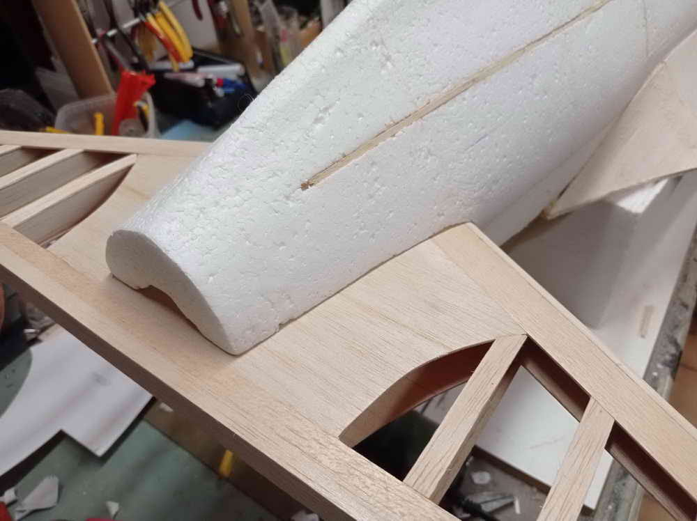 ... die schrägen Scharnierkannten fehlen noch ... ... die Höhenruderaussparung wird mit der Styro-CNC geschnitten ... dabei ist auf korrekte EWD + horizontale Ausrichtung zu achten !