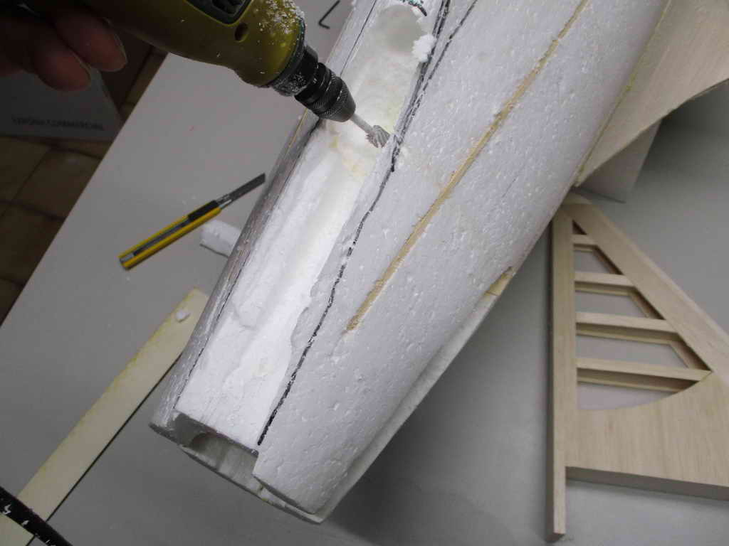 ... passt perfekt ! ... die Einpassung des Seitenleitwerks erfolgt vorsichtig mittels Proxxon-Fräser ... schön vorsichtig, denn weg ist weg !