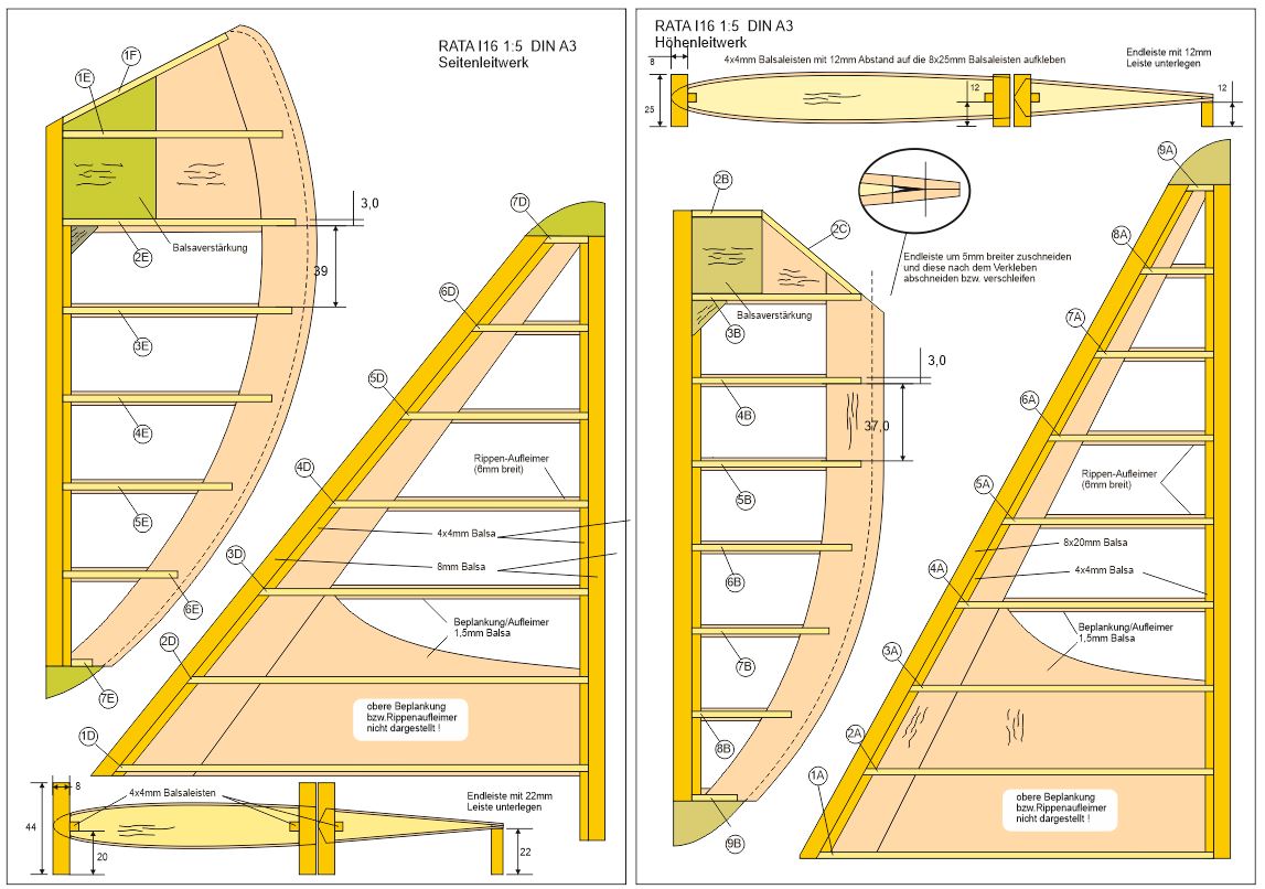 Leitwerke Die Leitwerke entstehen ganz traditionell in Balsa-Rippenbauweise ! Die Pläne sind im CAD entstanden und werden in A3 1:1 ausgeruckt und als Bauvorlage verwendet ...