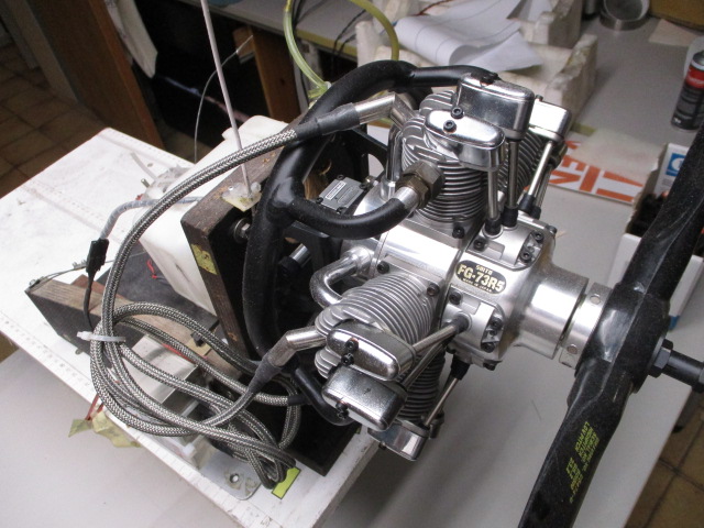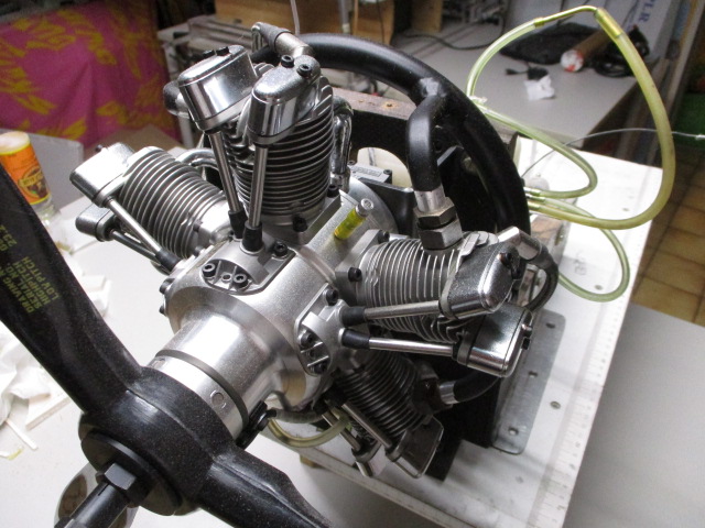 Antrieb SAITO FG73R5 (5-Zylinder-Stern / 73ccm / Viertakt / Benziner) 73cc scheint für ein 1:5-Modell mit lediglich 176cm Spannweite etwas übermotorisiert zu sein ... aber auch das Original war heftig motorisiert und Gewicht kann man bei der Modellgeometrie nicht genug unter der Haube haben ... besser als Blei reinzupacken ist das allemal !