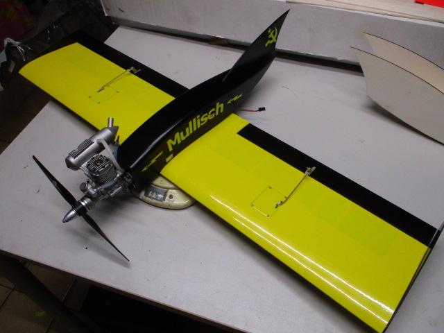 ... 40gr. leicher als der 'Prototyp' ... mein 5. - mit 6,5cc Super Tigre Heckauslass ... der Rumpf wurde etwas modifiziert ... für Heckauslass + Reso mit Doppelleitwerk !