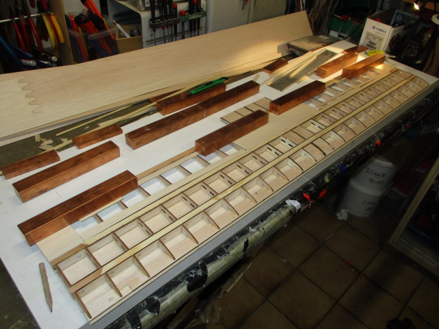 ... die Rippenaufleimer werden mittels Leistenschneider aus Beplankungsresten erstellt ...