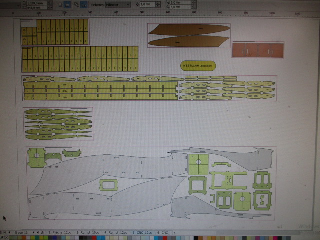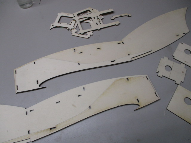 Die Spanten und die Seitenteile des Rumpfes sind soweit fertig ausgelasert.