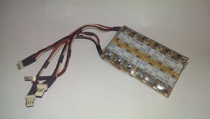 Wer im Modellbau Lipo-Akkus verwendet, kommt um die Verwendung eines 'Lade-Balancers' nicht herum. Diese kleine Schaltung wird während dem Ladevorgang parallel an jede Lipozelle angeschlossen. Der Balancer verhindert eine Überschreitung der maximal zulässigen Spannung der Lipo-Zelle. Frage: Ich habe mir extra ein Lipo-Ladegerät gekauft .... brauche ich dann noch einen Balancer ?? Anwort: Ja !! Geladen wird normalerweise mit 1xC ... d.h. eine 1200mAh-Lipo sollte mit max. 1200mA geladen werden !! Ein Lipo-Ladegerät funktioniert prinzipiell zuerst als Konstantstromquelle, welches beim Erreichen einer bestimmten Spannung am Akkupack (4,23VxZellenzahl) den Strom herunterregelt ... es wechselt also beim 'Vollwerden' der Lipo-Zelle in eine Konstantspannungsquelle (Spannungskonstanter). Wenn dann der Strom 1/10 des max. Ladestroms unterschreitet wird der Ladevorgang abgebrochen und vollzug (voll) gemeldet. Soweit so gut ... nur weis das Ladegerät beim 'Serienladen' nur die Gesamtspannung aller in Reihe geschalteter Zellen ... !! Lipozellen können spannungsmässig auseinandertriften, wodurch die eine Zelle überladen wird und die andere nie volle Ladung erreicht --> dies führt unwiderbringlich zum Tod des Lipo-Packs !! Genau dieses Auseinandertriften der Zellen wird vom Balancer während dem Ladevorgangs wieder behoben .... die Zellen werden wieder angeglichen, in dem er den Ladestrom beim Erreichen der 4,23V um die volle Zelle 'herumleitet' .... diese also nicht weiter geladen wird. Eine andere Möglichkeit besteht im Laden der einzelnen Zelle ... dadurch wird jede Zelle auf Ihr Maximum (4,21V ... 4,23V) geladen ... es werden also alle Zellen immer gleich voll geladen. Dazu brauch ich entweder soviele galvanisch getrennte Ladegeräte wie Zellen im Pack vorhanden sind oder ich brauche Zellenzahl x (mal) so lange, bis das Pack geladen ist ... ist also recht aufwendig. Bei neueren (aber auch teureren) Ladegeräten werden die einzelnen Zellen über den mittlerweile standartmässig vorhandenen Balanceranschluß geladen ... bei diesen Geräten ist ein Balancer nicht unbedingt notwendig, da ja jede einzelne Zelle überwacht und vollgeladen wird .... vorausgesetzt das Ladegerät funktioniert einwandfrei .... Kontrolle ist besser !! Ich lade meine Lipos prinzipiell nur mit angeschlossenem Balancer ... was beim Überladen einer Lipo-Zelle passieren kann seht Ihr unten auf den verlinkten Seite !! Hier nun meine Eigenbau Balancer ...