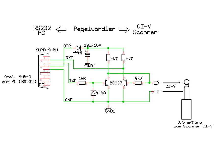 Schaltung für Scanner (Icom) mit CI-V-Schnittstelle:
