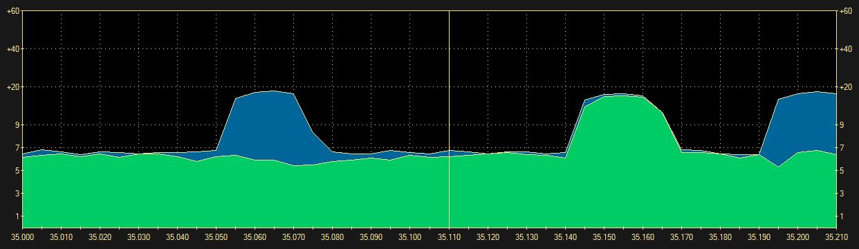 ... auf Kanal 75 (35.150Mhz) wird gesendet (grün) ... auf Kanal 66 (35,060Mhz) & 80 (35.200Mhz) wurde gesendet (blau) !!