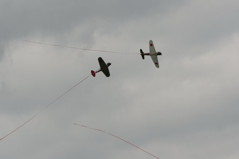 ... fertig sah's dann so aus ... die bösen Grauen links .... die guten NooB's rechts ! Im WW2-Wettbewerb lief's mal so mal so .... in der 1. Runden hatte ich zwei, Timo einen und Marc keinen Cut ... bei der zweiten Runde hatte ich ein Tief --> also richtig tief --> Crash mit Jan 7h oder anderst ausgedrückt --> der NooB muß weg ... er hat mich einfach so weggemacht und mißbrauchte meine Fläche als sanfte Abstiegshilfe !! Marc schlug zu (nicht ein) mit zwei Cut's und Timo's Höhenwelle beruhigte sich ... ... aber immer noch nüscht kaputt !! Beim Dritten hatten wir keinen, aber der 7h schon wieder einen von uns erwischt ... er hat so richtig fies von unten seine braune Plastikwurst in Timo's 'edle' Jak gebohrt ... oha ... da war einer echt stinkig !! Das Finale war bis dahin noch weit, weit weg ... aber man konnte es noch am Horizont erahnen ... zumindest mit Brille !! Runde 4 u. 5 haben wir's allen gezeigt ... naja, zumindest ein bischen ... zusammen 5 Schnittchen und 4x Streamer dran ... und ... Finaleeee ohho ... alle drei ... genial ... von den Grauen zwar halt auch der eine oder andere mit bei .... aber egal ... Hansjörg lag punktgleich mit Patrick (mhhmm ... noch ein grauer) ... also Finale zu acht .... 4 graue, wir drei und Hansjörg ... der arme .. hehehe ... da war was los ... ... kleine Rempler hier und da, aber kein Crash ... sensationell !! Ich zwei und Marc auch nen Cut ... Timo immer noch nüscht kaputt ... so geht das ... und wie gings aus ... guckst Du ganz unten !!! ... hier hat Jan 7h voll fies meine Fläche abgegriffen ... !!
