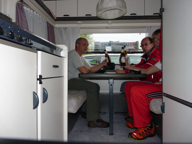 ... na, was wohl ... 3 Minuten nach Ankunft am Freitag eine Wolkenbruch vom Feinsten ... ... Altensteigwetter halt ... also zuerst mal in den WoWa und gemütlich abwarten, während die Graukäppchen ihre Zelte im 'Piss' aufbauen mussten !