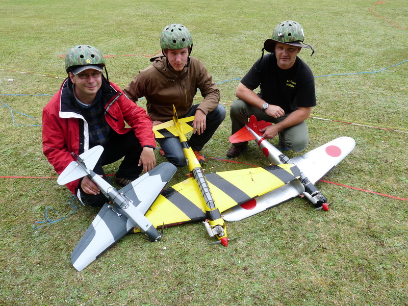 Team "NOOB's" (v.l.n.r.) in Altensteig 2011 + Bewaffnung : NOOB-3 Timo Tränkle - 2x Yak-9 (E) NOOB-2 Marc Fehrenbach - 2x Fairey Battle (V) NOOB-1 Michael Furrer - 2x B5N (V)![]()