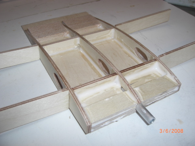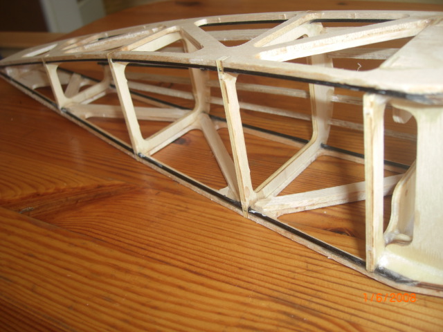 ... das obere Flächenmittelstück ... mit Verstärkungen für die Flächenverschraubung ... Beplankung fehlt noch !!