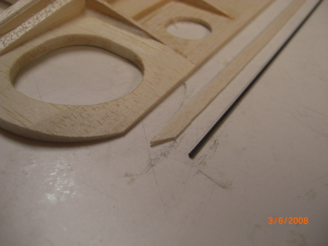 ... die Endleisten der Flächen habe ich mit einem 1mm CFK-Stab verstäkt ... hiezu wurden 5mm-Balsastreifen abgeschnitten !!
