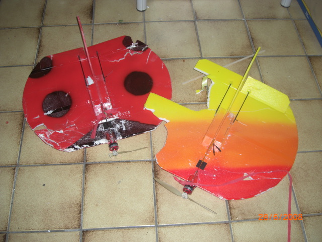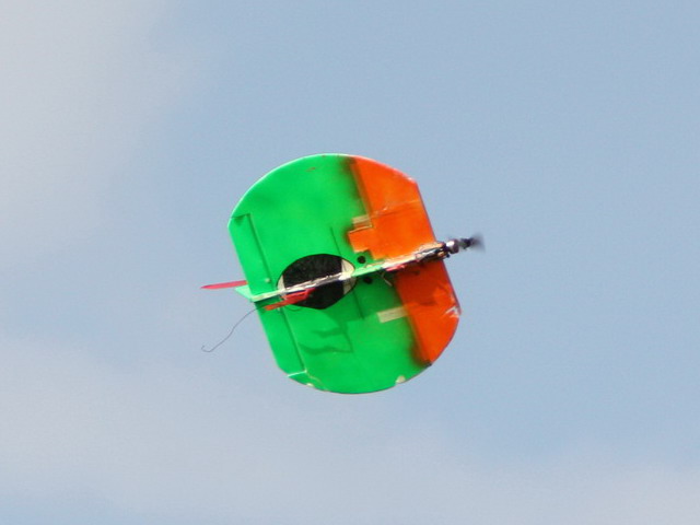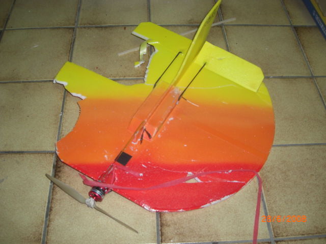 Mal was anderes ... Die Scheibe mit Verbrennungsmotor war schon vor Jahren mein Liebling und hatte einen besonderen Spaßfaktor ... vor allem, wenn man mit mehreren zusammen in der Luft unterwegs war ... Fuchsjagt lässt grüssen !!... ein Erinnerungsstück aus alten Zeiten hängt noch im Bastelkeller an der Wand ! Hier nun eine E-Version, welche im Nutzverhältnis ( Spaß / (Kosten*Bauzeit) ) sicherlich unschlagbar sein dürfte. - unter 5€ Materialkosten (ohne RC/Motor) - Bauzeit bis 1.Flug nur ca. 2,5 Stunden - günstigste RC-Komponenten ausreichend - Motor + Regler + Lipo für zusammen unter 25€ ... siehe weiter unten - 100% Spass Was brauchts: Material: 6mm Depron (60x55cm) 500mm Kohlestab (2mm) 100mm Buchen-Rundholz (ca. 10mm) 10cm Schrumpfschlauch (3mm) Tesafilm (oder schmales Tape) Kleber (5Minuten-Epoxi oder LT-Heiskleber) --> empfehle die Niedertemperatur-Klebepistole LT110 von UHU Sekundenkleber Werkzeug: Schleifpapier Klingenmesser ebene Platte in der Grösse des Fliegers .... oder Küchentisch RC/Motor: BL-Motor (30 - 40gr.-Klasse) Regler (ca.10 bis 12A) 2xServo (9gr) Lipo (600-1000mAh / 2-3S) Empfänger (Grösse ca. REX-4 / Corona-4S) Prop 8x4 bis 9x6 ... je nach Motor !