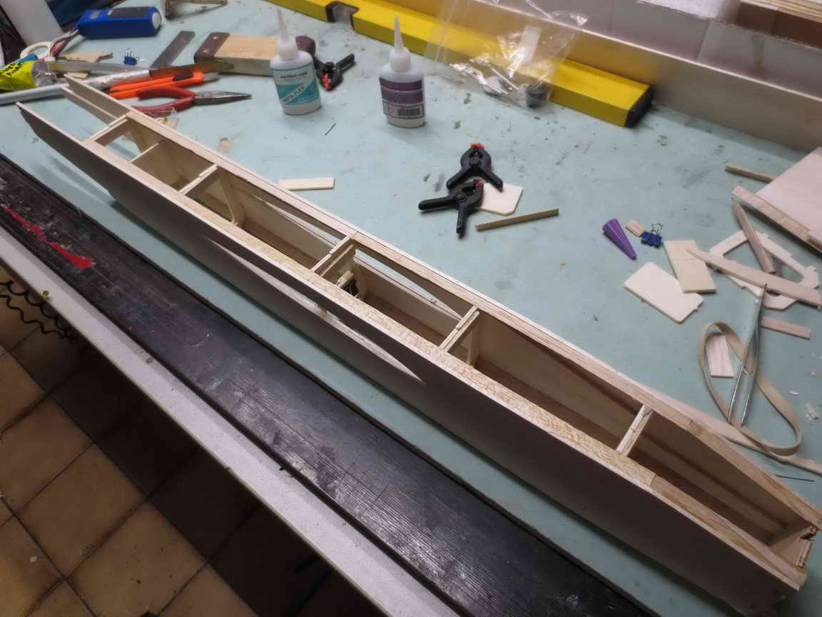 ... die Balsaverkleidungen am Heck und an der Nase werden verklebt ...