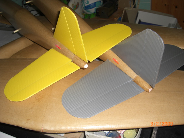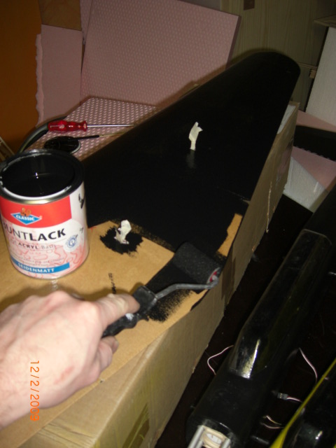 ... noch ein bischen Farbe und. fertisch ist das Fluggeflügel !! Das Leitwerk besteht aus 3mm-Stegplatten welche ich (da vorhanden) mit meiner CNC 'geschnitten' habe ... geht natürlich auch einfach mit einer Schere ... geniales Material !! --> zu bekommen bei epp-versand.de
