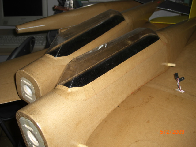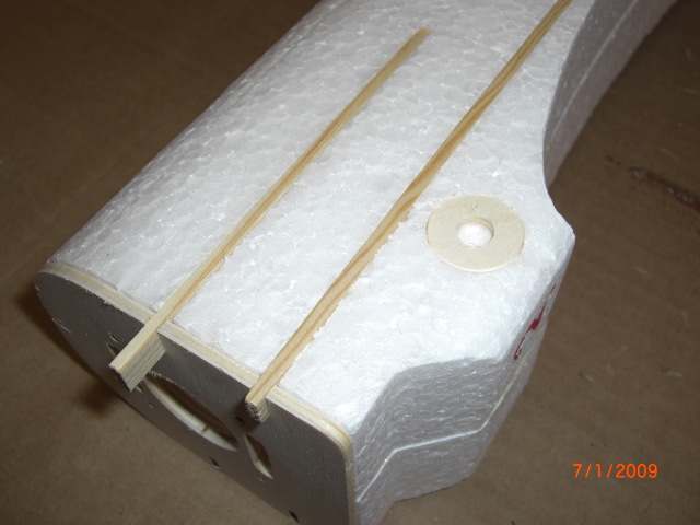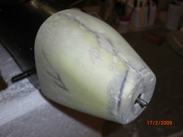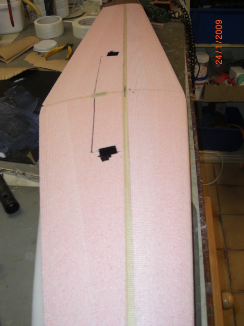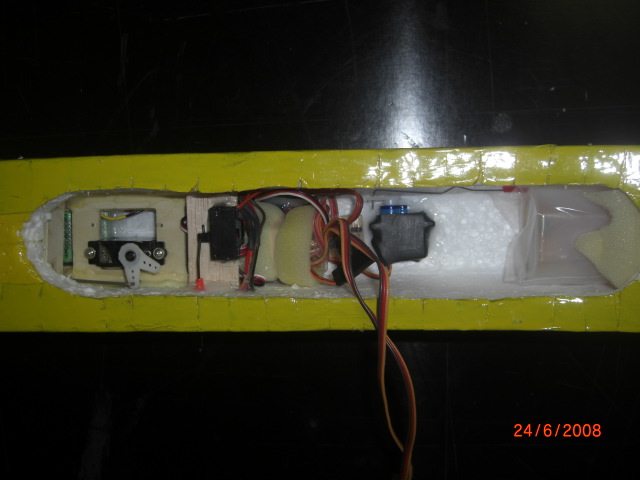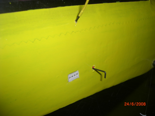 ... die Position der Leitwerke wurden am Rumpf angezeichnet, mit scharfem Klingenmesser ausgeschnitten und dann mit Fermacel eingeklebt .... die Bowdenzugröhrchen sind auch schon drin !