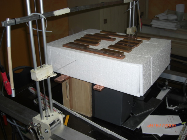 Dann weiter mit der Fläche ... ... das Schneiden dieser stellte sich als etwas einfacher heraus ... aber wieder eben nur 'etwas'. Auch hier hatte ich anfänglich etwas Probleme am Aussenbereich der Fläche aufgrund erhöhten Abbranntes ... d.h. durch die geringere Drahtgeschwindigkeit wir am Aussenprofil mehr Material weggeschmolzen --> das Profil wird zu dünn ... bekam ich aber auch in den Griff !!