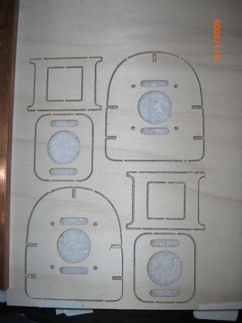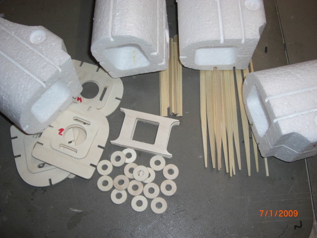... hier alle vorgerichteten Holzteile für den Rumpf vor dem Einkleben ... die 'Holzscheiben' dienen als Verstärkung für die 8mm Rundhölzer der Flachenbefestigung ... nun gehts an kleben !!