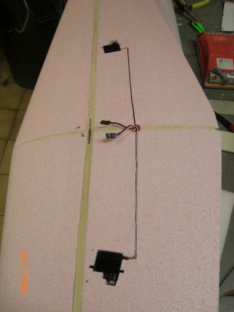 Als Querruderanlenkung verwende ich bei Modellen dieser Größe immer zwei Flächenservos .... diese wurden nun eingepasst und die Servokabel in der Fläche verlegt.