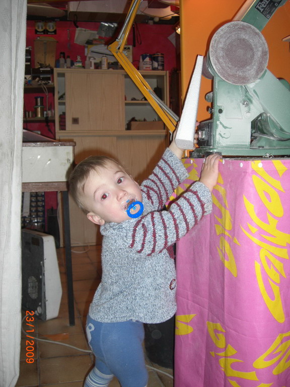 ... der Chef im Keller ... bei soviel Hilfe geht's flott voran !! Der Motospant besteht aus zwei 3mm Sperrholzbrettchen, welche vorab zusammengeklebt werden ... das kleinere passt später exakt in die innere Rumpfaussparung. Da diese Battle's elektrisch angetrieben werden sollen, wurden die Motorspannten mit den entsprechenden Bohrungen für C35XX-Motoren gefrässt.