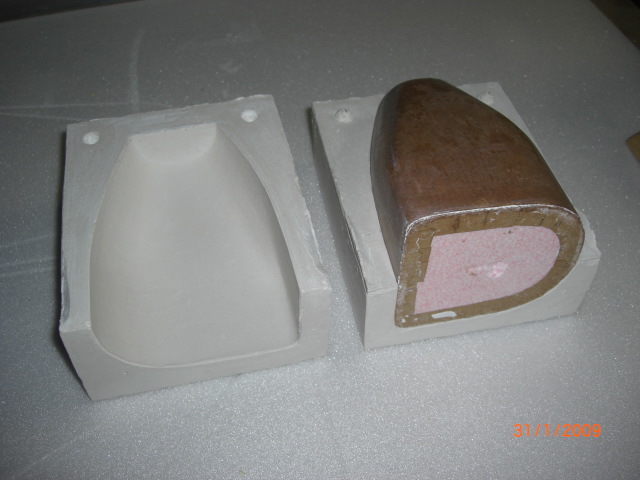 ... dann in zwei Schritten halbseitig in Giesgips eingegossen ... vorher natürlich schön mit 'Windelcreme' vom Kleinen behandelt ... !