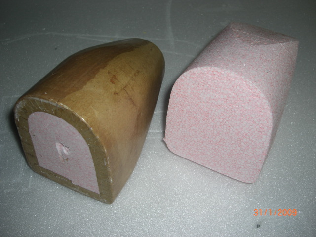 Die beschraubten E-Muttern werden vorab mittel U-Scheibe und Mutter von 'innen' in den Motorspannt eingezogen ... etwas Sekundenkleber fixiert dann noch alles. Die U-Scheiben bleiben dann auf den Schrauben die Muttern kommen weg ! Die Bilder erklären denke ich den Rest .... Motorhaube: Nun kommt die Motorhaube ... aus GFK sollte sie sein und da ich mehrere brauchte musste eine Form her ... aber wie ? ... Form erstellen ... laminieren .... oje ... keine Ahnung .... Styroporkern mit meiner Styro-CNC vorgeschnitten, verschliffen und dann mit Packpapier bespannt ... man gewöhnt sich langsam an das Zeug !!