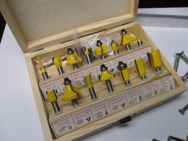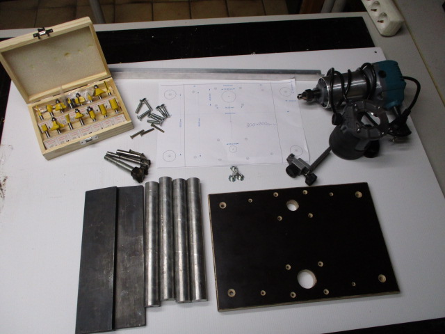 ... das komplette Fräserset gibt's schon ab 15€ ... ... einmal für kleine und einmal für größere Frässer gebohrt ...