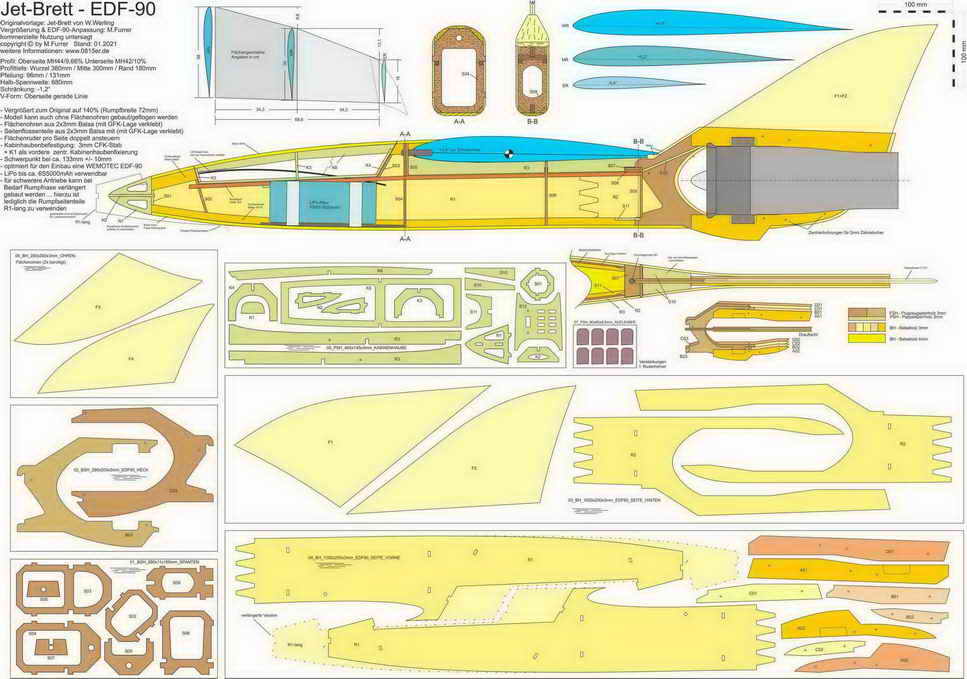 Masstab: 1:1,4 zum Jet-Brett FMT-Bauplanmodell