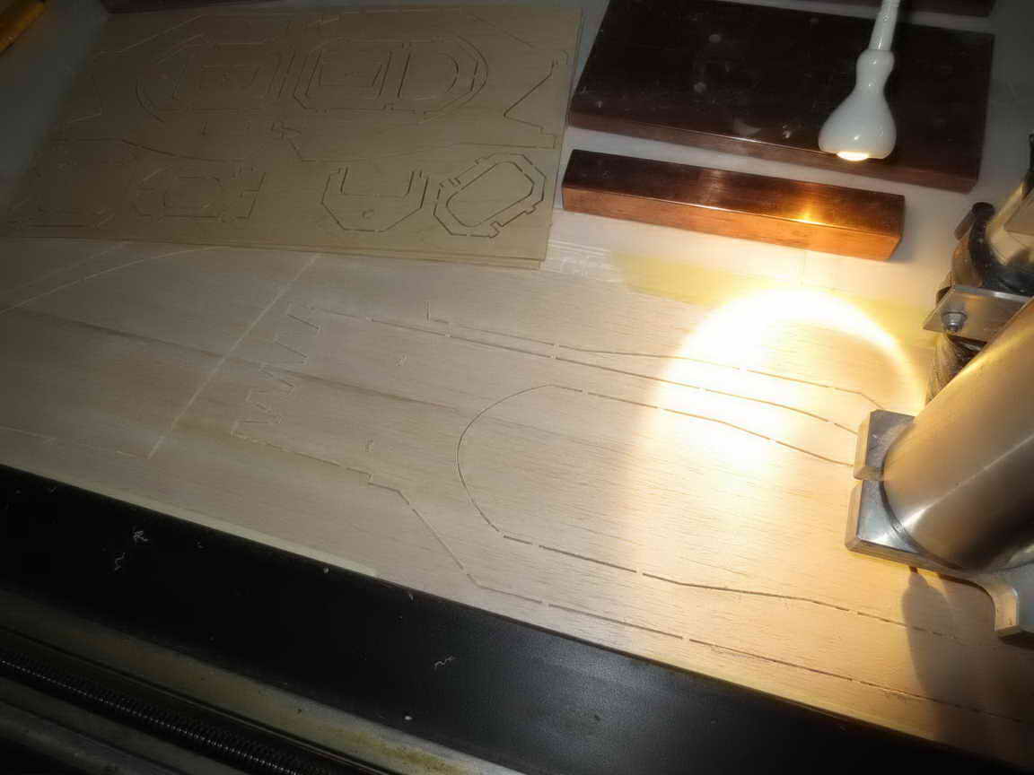 ... nach dem Ausschneiden der Ruder werden diese auch gleich fertig beschnitten und mit 5mm-Leiste 'verschlossen' ...