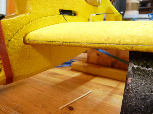 ÄNDERUNGEN / VERBESSERUNGEN : ... da bei härteren Landungen das Fahrwerk regelmässig abgebrochen ist, wurde dies mittels 2mm CFK-Stäbchen verstärkt !![]()