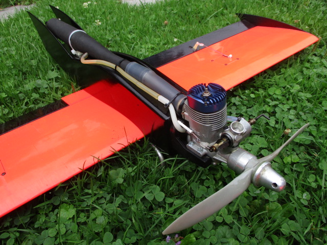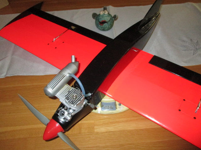 ... 40gr. leicher als der 'Prototyp' ... mein 5. - mit 6,5cc Super Tigre Heckauslass ... der Rumpf wurde etwas modifiziert ... für Heckauslass + Reso mit Doppelleitwerk !