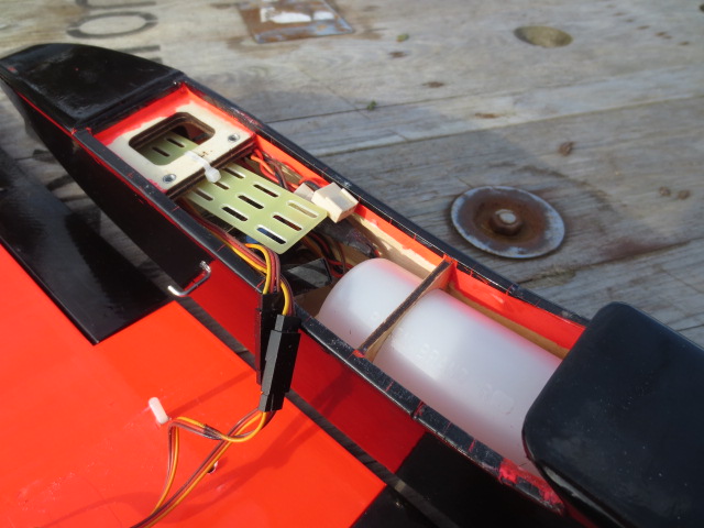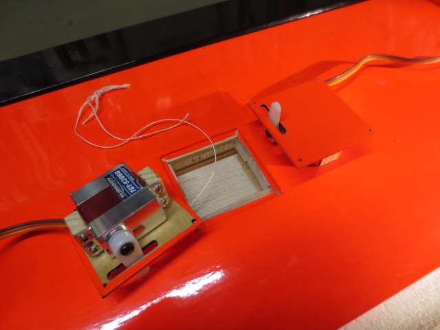 ... nach dem Durchziehen der Servoleitungen wird der Deckel mitsamt Servo mit der Fläche verschraubt ...