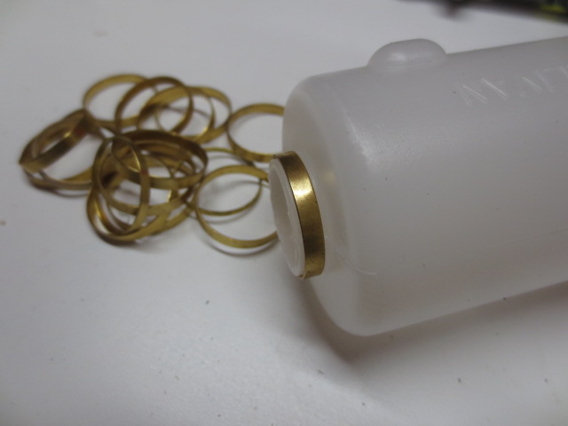 ... der Akku wird auf ner GFK-Schiene montiert und in das Heck geschoben ... ... dann kann man durch Verschieben & Fixieren der GFK-Schiene den Schwerpunkt perfekt einstellen ! ... nicht verwirren lassen ... den Rumpf hab ich dann aus optischen Gründen noch mit schwarzer Bügelfolie bespannt ! ... um das übliche Aufreisen des Tanks zu verhindern bekommt dieser einen 'Ring' verpasst und die Messingröhrchen bekommen mit ner Eigenbau-Biegevorrichtung Ihre Form !