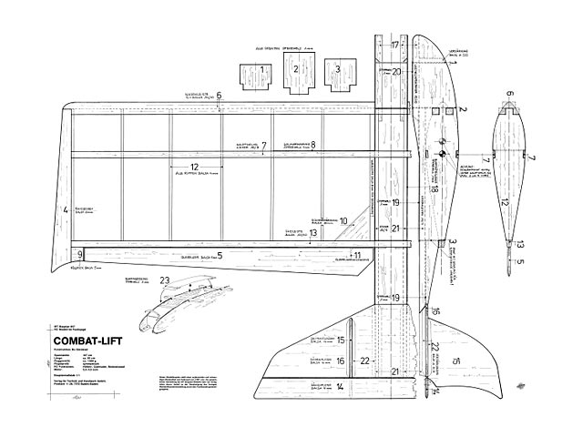 Das Fliegerchen ist mit 4cc-Verbrenner schon extrem schnell und wendig unterwegs ... bei 6,5cc dann aber schon eher grenzwertig ! Da der Bauaufwand sich in Grenzen hält ... passt das Verhältnis von Spass zum Aufwand ! Vor vielen Jahren hatte ich mal ein optisch 'ähnliches' Modell nach Plan gebaut ... nannte sich Combat-Lift ... ich hatte auch damals schon jede Menge Spass mit derart Fliegerchen !... der 80'er Jahre Combat Lift ...