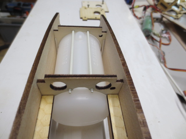 ... aber sieht prinzipiell doch schon mal gut aus ... ... der Tankbereich wurde mittlerweile für den 180cc HK-Tank angepasst ... auch ein Kavan 150cc ist nun verwendbar. ... dann wird Stück für Stück verklebt ... mit dem 2mm-Rumpfaufleimer wird begonnen ... die werden zuerst auf beide Seitenteile 'plan' verklebt