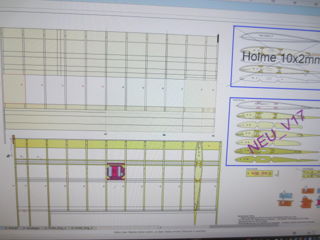 los geht's ... der digitalisierte (eingescande) Original-Plan wird als entsprechende Vorlage in's CAD eingebunden ... die Spanten, das Leitwerk, etc. können dann recht einfach nachgezeichnet werden ... einfacher, schneller und genauer geht's nicht ! Man könnte dann natürlich noch die einzelnen Teile mittels 3D-Programm virtuell vorab zusammensetzen ... aber das lohnt sich bei einer so kleinen & recht einfach gehaltenen Konstruktion nicht. Beim Nachzeichen der Konturen fließen dann die obigen 'Änderungen' gleich mit ein.![]()