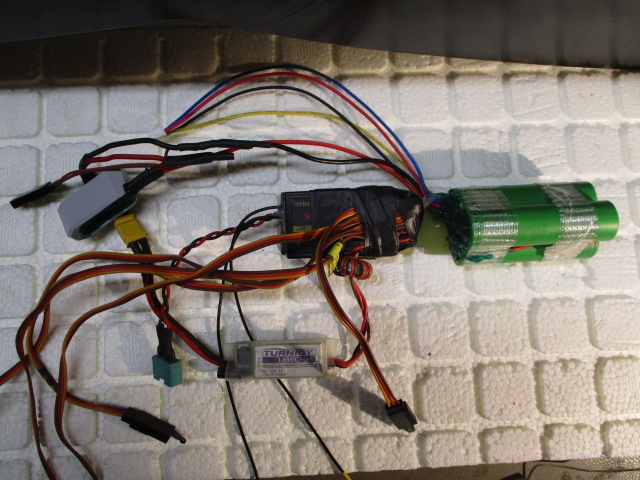 ... Empfänger + Akku + U-Regler + Schalter ... alles auf ner GFK-Schiene ... fertig zum Einbau im Heck !