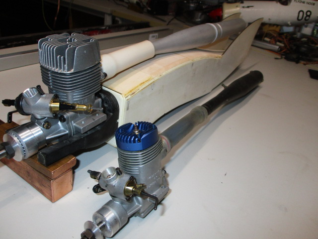 Motorenanprobe ... neben dem SuperTigre 60X (10cc) wirkt der 6,5er richtig mini ...