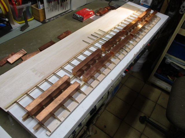 ... die Rippenaufleimer werden mittels Leistenschneider aus Beplankungsresten erstellt ...