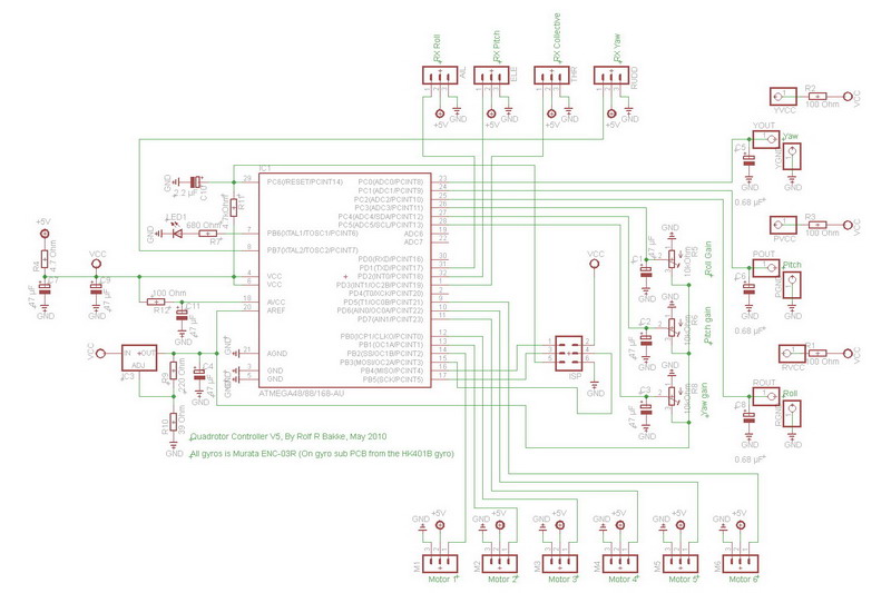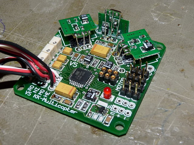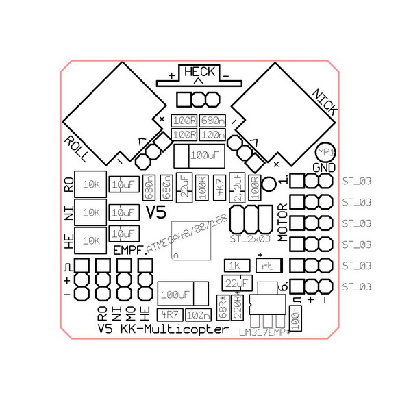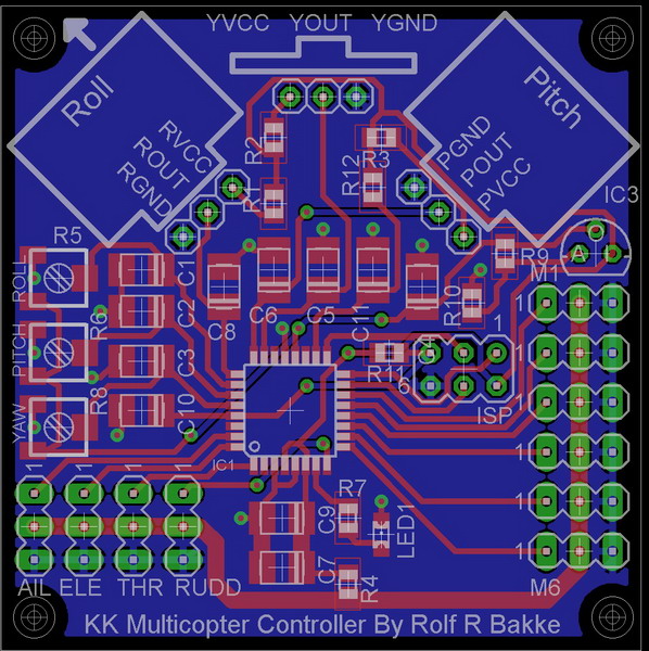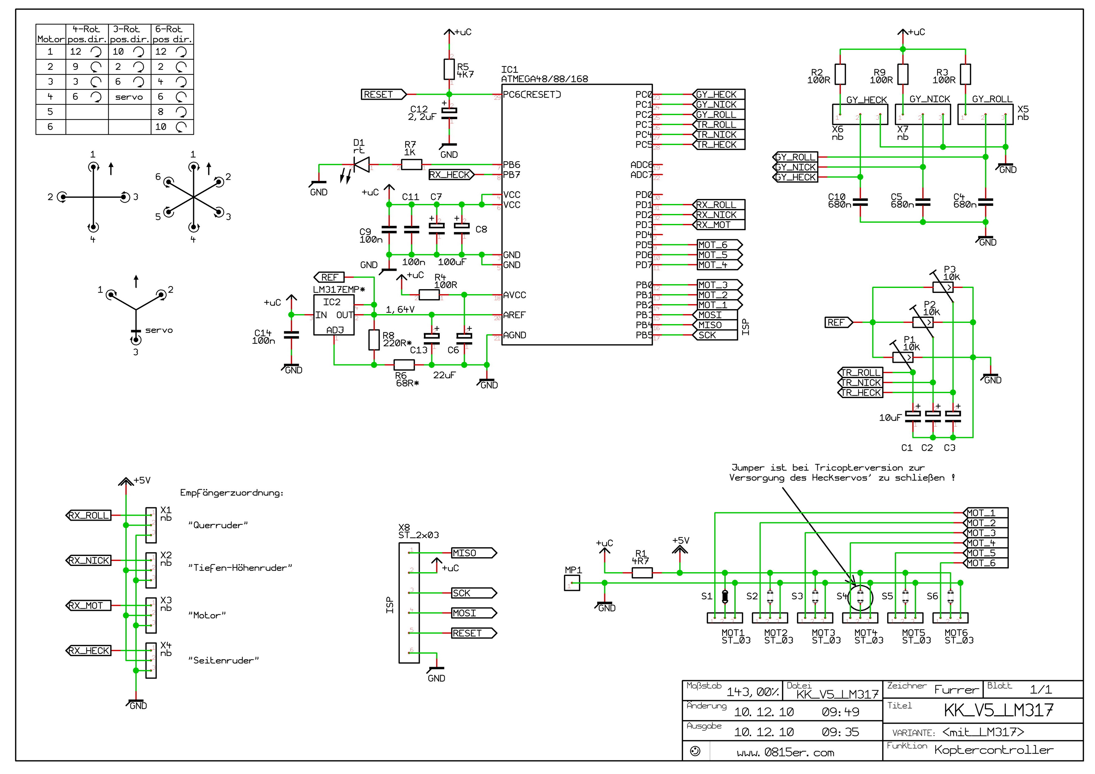 Schaltung wurde vom KK-Multicopterboard übernommen, es wurden lediglich ein paar 'Optimierungen' im Bezug