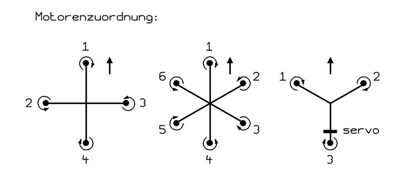 Belegung & Drehrichtung der Motoren ... für Quad- Tri- oder Hexcopter !