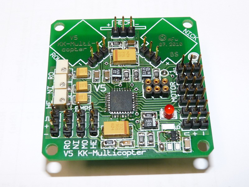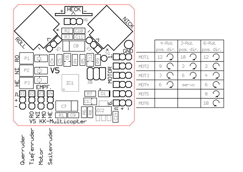 Vorteile KK-Multicopter: billigste China-Motoren, - Regler und Kreisel funktionieren perfekt ... einfache und leicht selbst herstellbare Mischerplatine ... jede 4-Kanal Fernsteueranlage